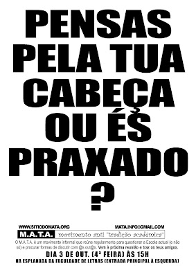 Felizmente o início de um novo semestre não é motivo para mais disparate de capa e batina e podemos então aliviar um bocado as ideias. Mas e para o ano? E daqui a 5 anos? Teremos mais disto? Ou vai ser MESMO DIFERENTE não existindo de todo?